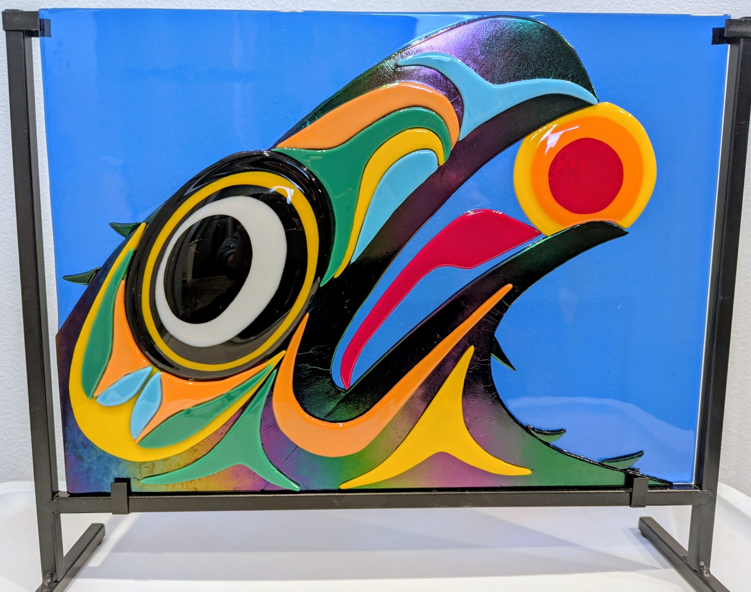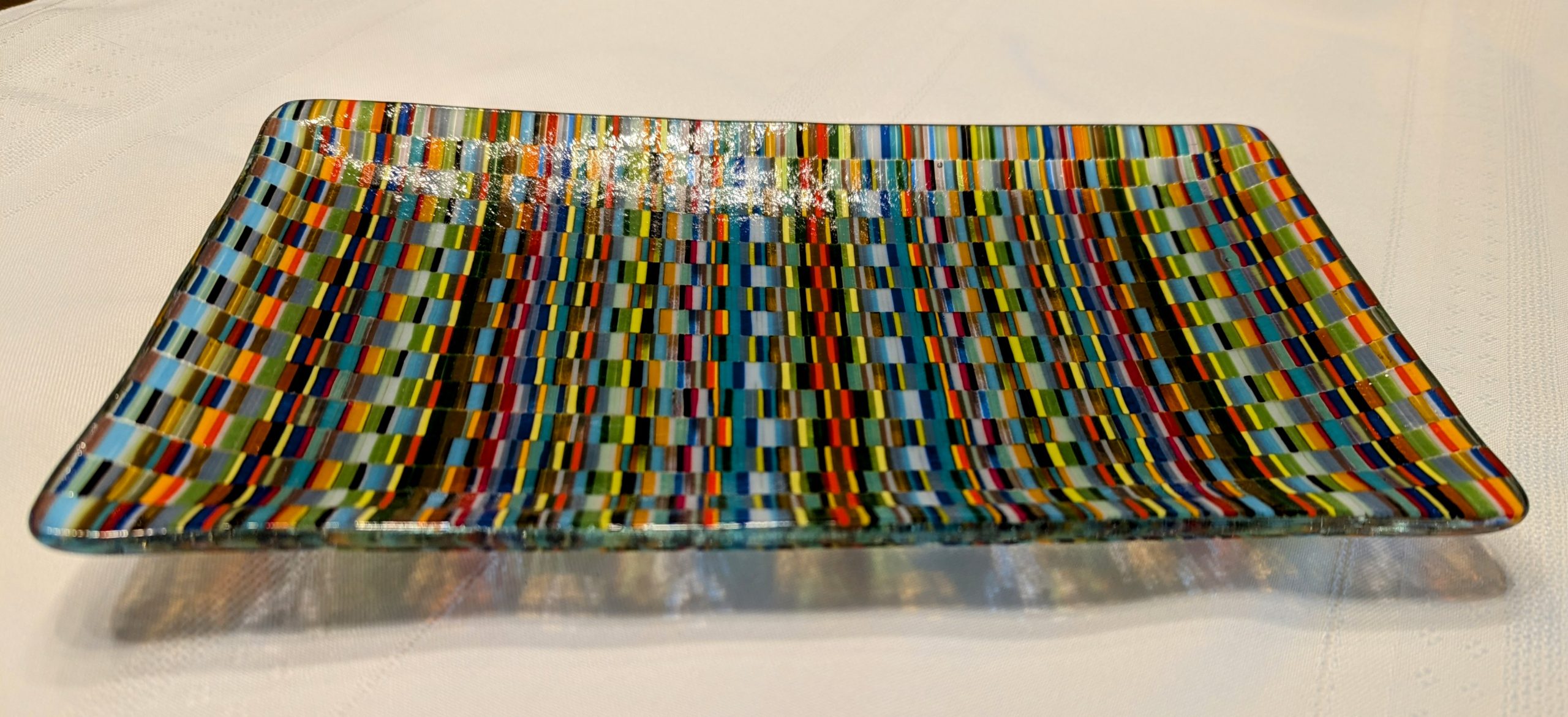 Rainbow paint pour – see video on Facebook to see how this was created (Trent Art Glass)